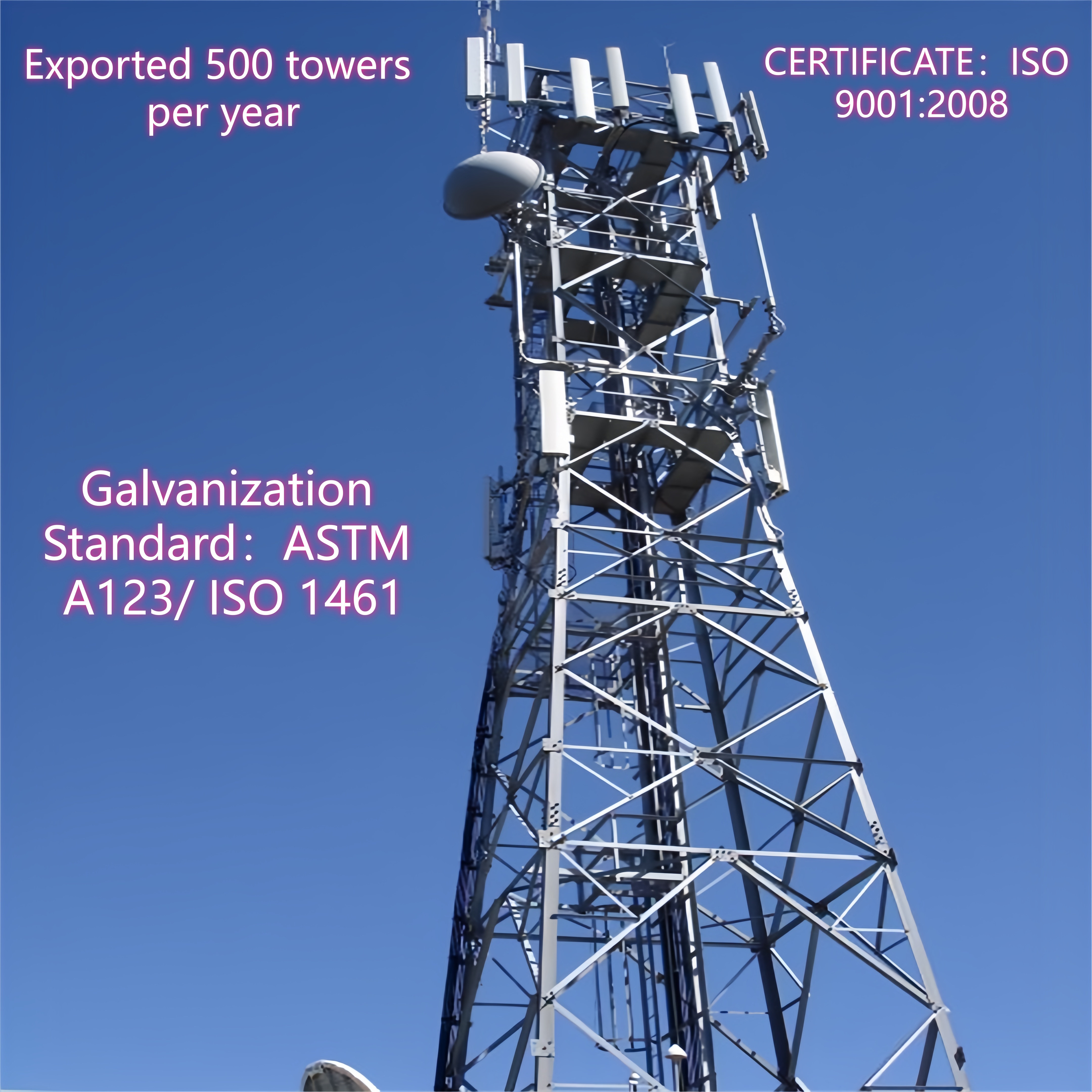 Our company is a professional steel tower manufacturer with ISO certificates based in China.