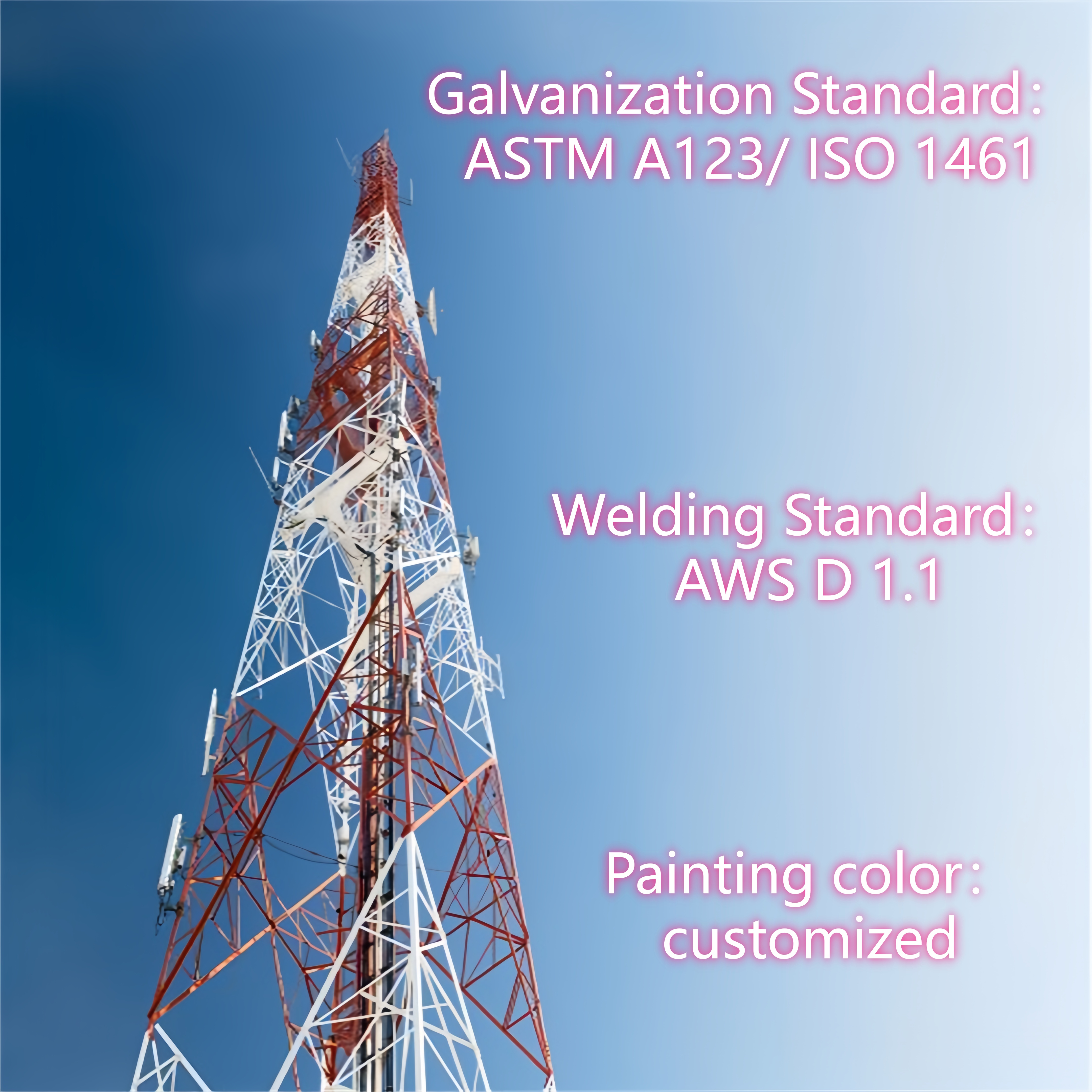 4 legged angular steel tower are based on either ground or building, and they are commonly designed in trusses structure to carry the wind loads and seismic loads. 4 legged angular steel tower is easy to process, transport and install. The overall rigidity of the angle steel tower is large, the bearing capacity is strong, and the technical application is mature.