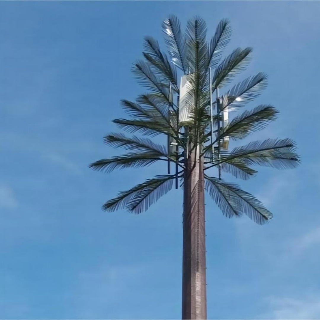 2. Reinforced Stable Structure: The internal main body is a hot-dip galvanized high-strength steel monopole, with a height range of 15m-50m, which can support 4-8 sets of 5G antennas, microwave equipment and even scenic monitoring sensors. All cables and equipment are completely hidden inside the trunk and canopy, with no exposed parts.