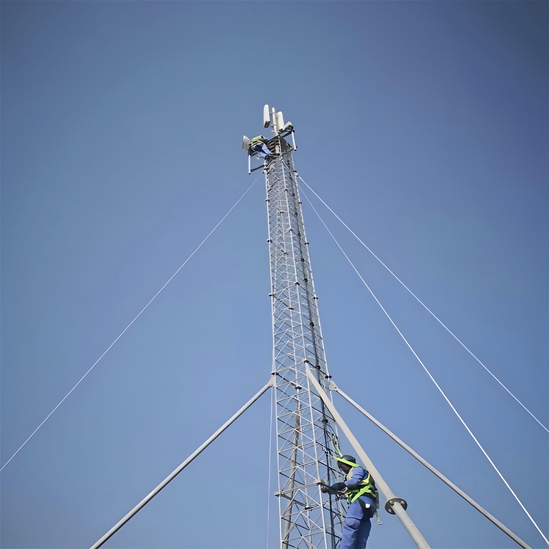 What is the connection between the guyed wire and the tower body of anemometer tower?