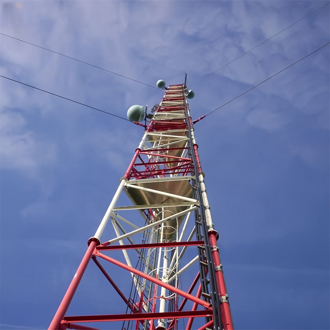 What is the connection between the guyed wire and the tower body of anemometer tower?